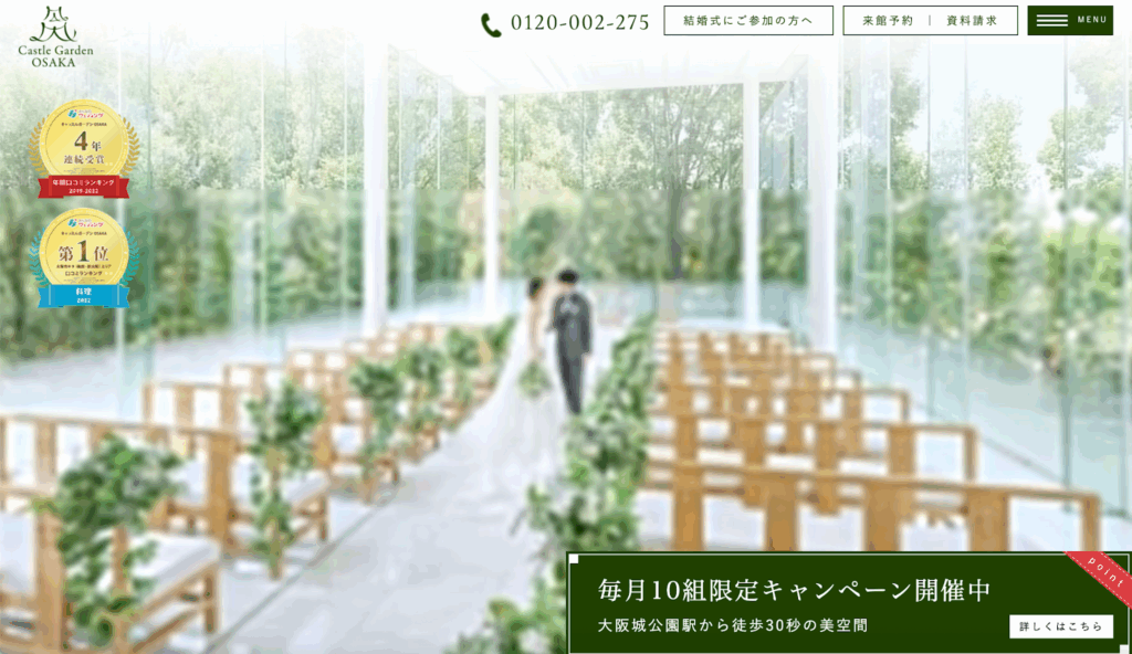 大阪城公園駅から徒歩すぐ、大阪城を背景に誓える唯一無二のロケーションが魅力のキャッスルガーデンOSAKA。