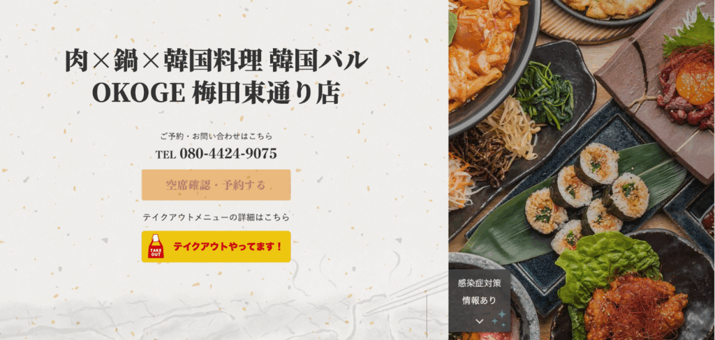梅田・東通りに位置するOKOGE(オコゲ)梅田東通り店は、韓国料理をベースにした焼肉・サムギョプサルが楽しめる人気店。ランチには「サムギョプサル食べ放題」などのお得プランがあり、肉ランチ派にもおすすめです。