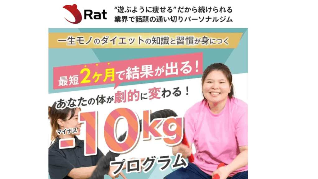 「遊ぶように痩せる」をコンセプトに掲げるパーソナルジムRatは、心斎橋エリアで人気のジムのひとつ。トレーニングはハードすぎず、初心者でも無理なく継続できるよう配慮された内容が魅力です。