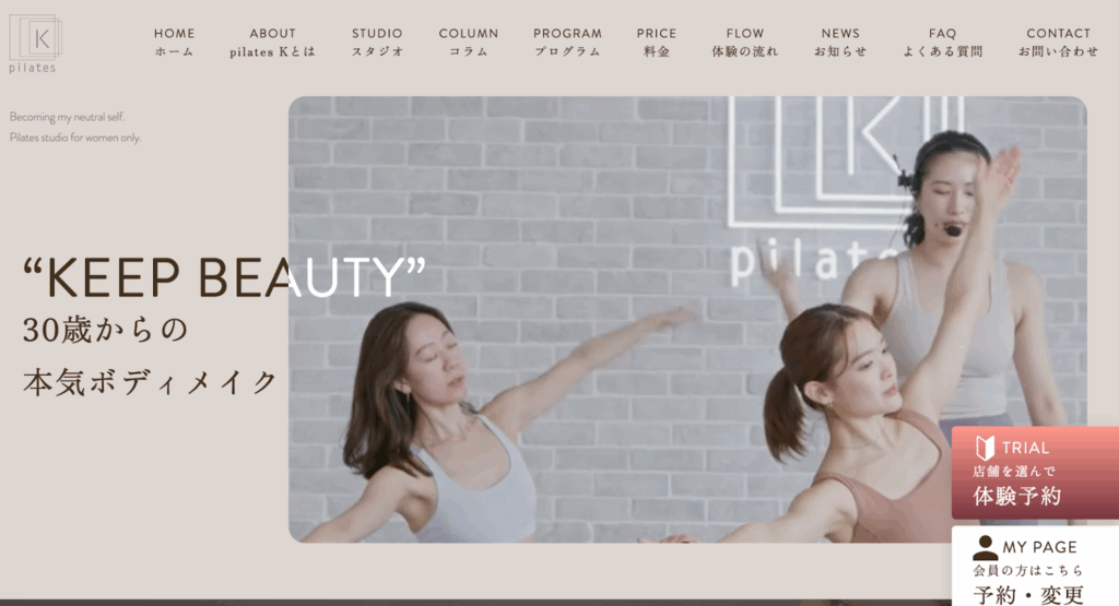 BESJ(Body Element System Japan)公認スタジオとして、正確な動作と呼吸法にこだわったレッスンが受けられます。月謝制ではなくチケット制なので、忙しい方でも自分のペースで通いやすいのも大きな魅力です。体験レッスンや姿勢分析もあり、ピラティス初心者にもおすすめです。