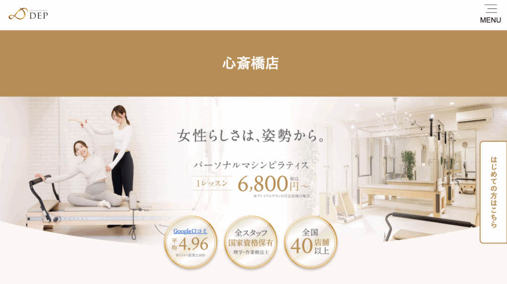 店舗名 | ピラティススタジオ DEP 心斎橋店 |
