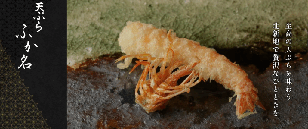「天ぷら ふか名」は、大阪・堂島に佇む隠れ家的な高級天ぷら専門店。完全予約制の静かな空間で、職人が目の前で一品ずつ丁寧に揚げる天ぷらを堪能できます。