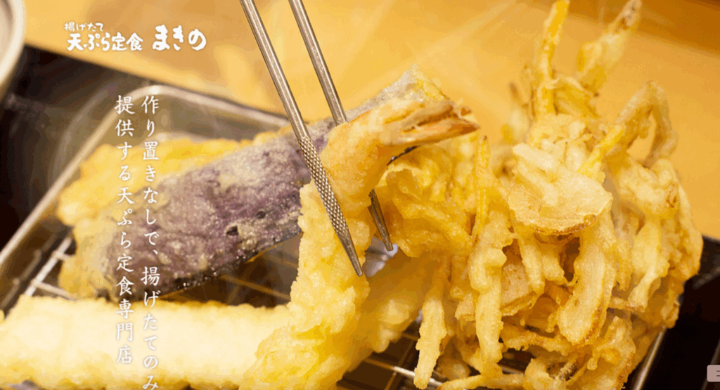「天ぷら まきの」は、揚げたてを一品ずつ提供するスタイルで人気の天ぷら専門店。大阪・天神橋筋商店街のすぐ近くにある「天神橋四丁目店」も、常に多くの人で賑わう人気店舗です。食材ごとに揚げ時間と温度を見極める職人技で、素材本来の味わいを引き出すのが魅力。