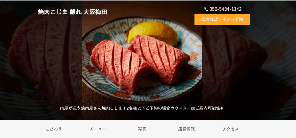店舗名 | 焼肉こじま 離れ 大阪梅田 |