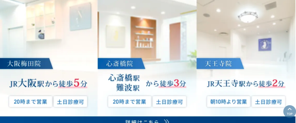 | 公式サイト | https://aoki-tsuyoshi.com/clinic/shinsaibashi/tennoji |