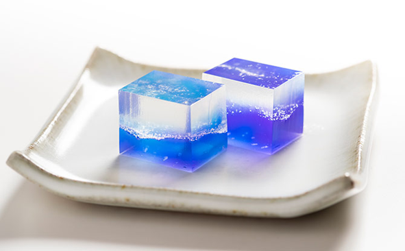 【担当:もも(17)】 老舗和菓子店「佐藤屋」が手がける、宇宙や海を閉じ込めたような美しい錦玉(きんぎょく)。