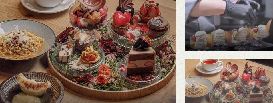 フレンチ出身シェフが手がける、甘い時間と食事の時間をどちらも楽しめる一軒です。昼はパフェやケーキ、アフタヌーンセットなど“盛り付けまでごちそう”なスイーツが主役で、香りや食感の組み立てが繊細。