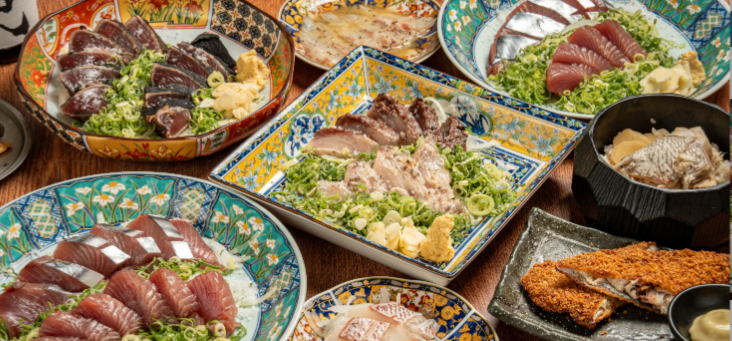 名物は豪快に焼き上げる藁焼き料理で、香ばしい香りと素材の旨みをしっかり感じられるのが特徴。特に鰹の藁焼きは定番人気で、お酒との相性も抜群です。〆に提供される鯛めしも評価が高く、最後まで満足感のある食事が楽しめます。