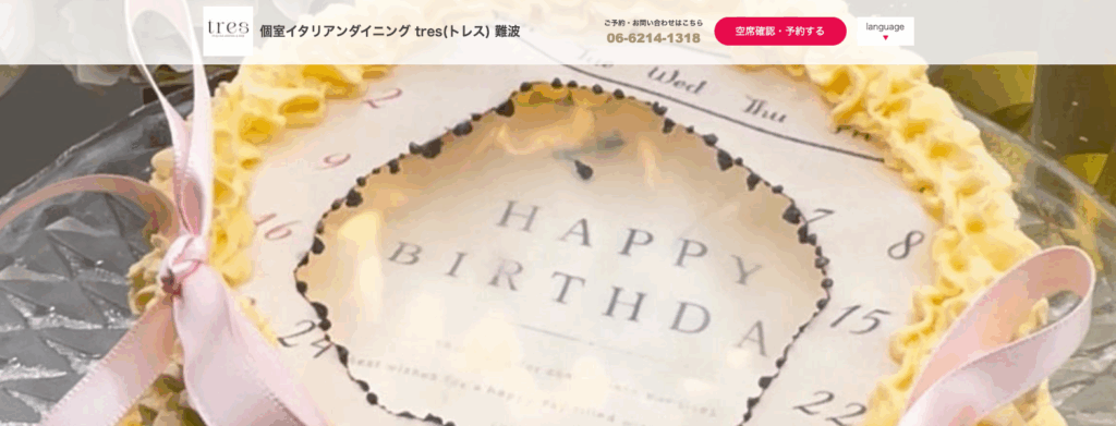| 店舗名 | 個室イタリアンダイニング tres 難波 |