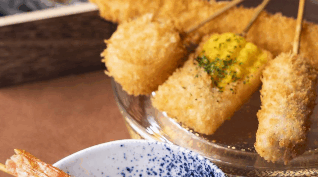 テーブル席が中心で、友達同士のグループ利用にも使いやすく、ゆっくり食事を楽しみたい人にもぴったり。串カツはサクサク軽い衣が特徴で、肉・海鮮・野菜とバランスよく揃ったラインナップに加え、変わり種まで幅広く楽しめます。特に素材の旨みを引き立てる揚げ具合が好評で、誰と来ても満足度が高い一軒です。