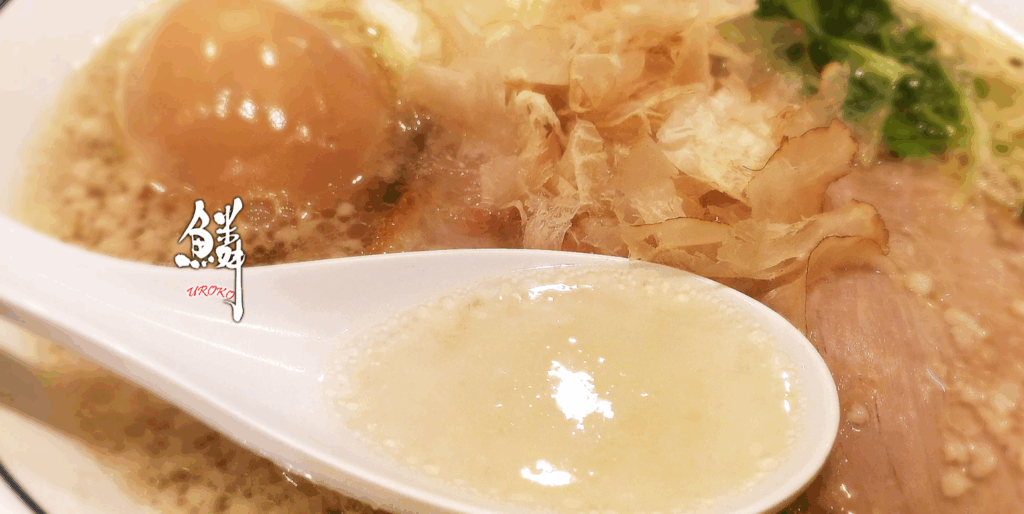 らーめん鱗 難波店は、南海なんば駅からすぐの便利な立地にあり、上品で洗練された塩ラーメンが人気の実力派です。