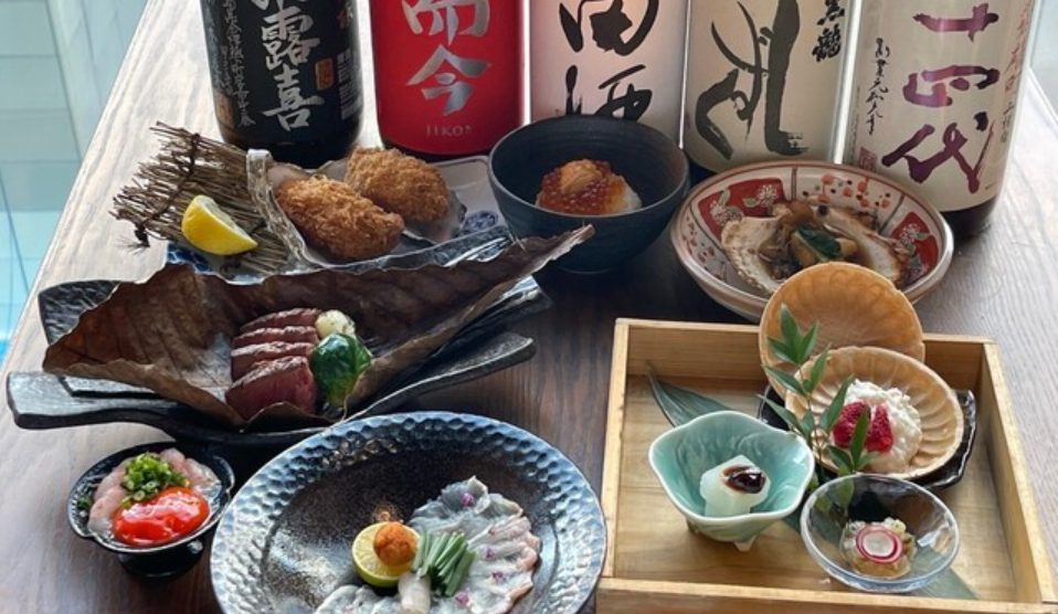 炉端で焼き上げた魚介・肉料理のひと皿一皿に、こだわりの日本酒・焼酎がよく合います。ランチタイムも営業しており、昼の利用も可能。施設の営業時間に準ずるため、定休日や営業時間は訪問前に確認しておくと安心です。
