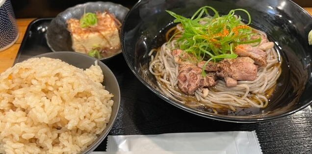 スタッフの接客も丁寧で、料理の提供スピードも安定しているため、忙しいビジネスパーソンでも安心して利用できます。ディナー帯は一品料理やお酒も充実しており、夜に軽く蕎麦前を楽しむ利用者も多いお店。裏なんばらしい活気はありつつ、落ち着いて食事ができるバランスの良い一軒です。