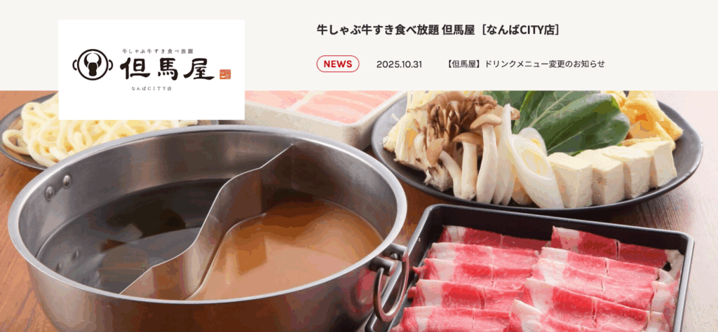 | 店舗名 | 牛しゃぶ牛すき食べ放題 但馬屋 なんばCITY店 |
