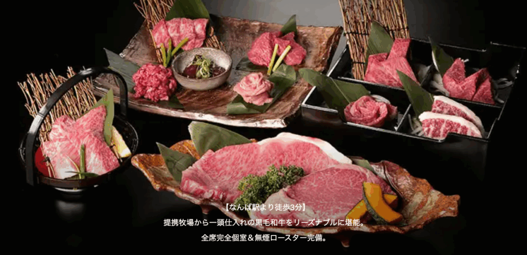 ベビーカー利用もスムーズで、家族連れでも過ごしやすい環境が整っています。ランチ営業があるため、比較的リーズナブルに楽しめるのも魅力。難波の中心で、“家族で特別感のあるお肉ディナー”を味わえる一軒を探している方におすすめです。