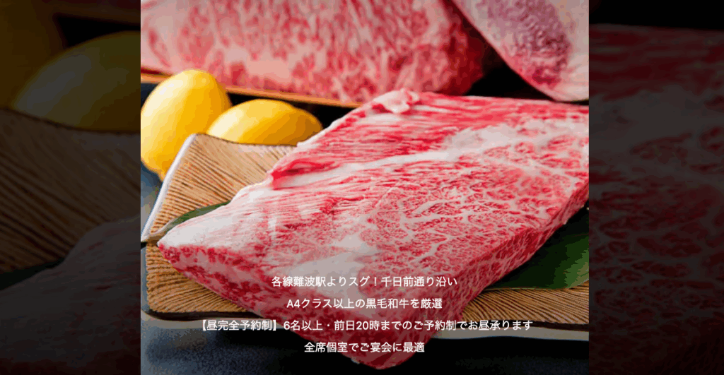 週末は混みやすいものの、予約すれば安心して利用でき、記念日やちょっとしたご褒美にもぴったり。難波で“落ち着いた家族焼肉”を楽しみたい方におすすめの一軒です。