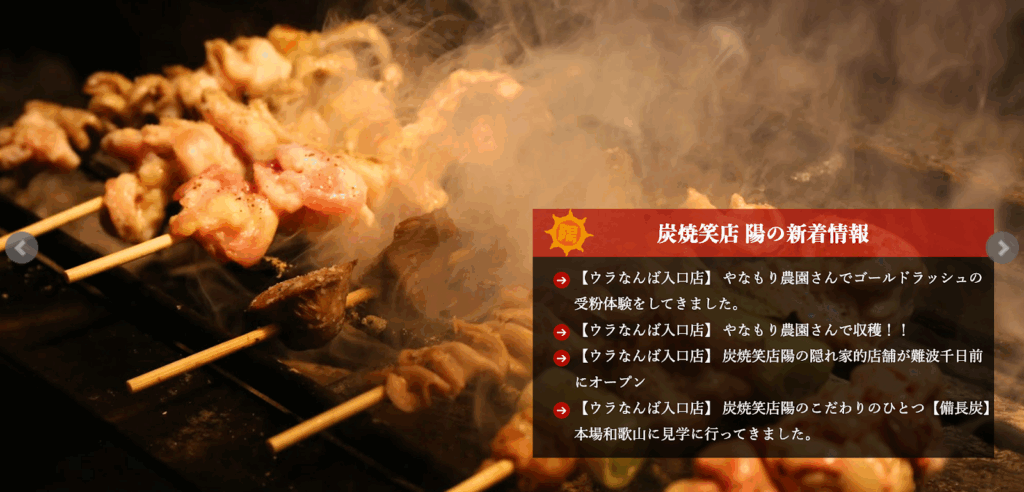 | 店名 | 炭焼笑店 陽 なんば店 |