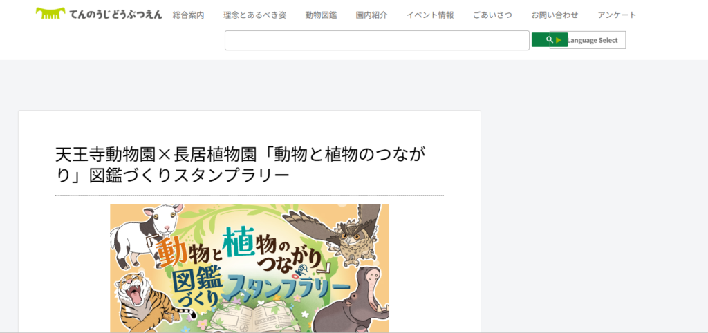 | イベント名 | 天王寺動物園×長居植物園「動物と植物のつながり」図鑑づくりスタンプラリー |
