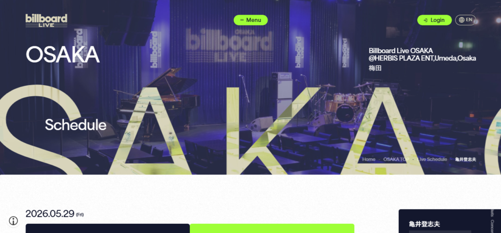 ビルボードライブ大阪で開催される、歌手・作曲家・音楽プロデューサー亀井登志夫によるスペシャルライブ。