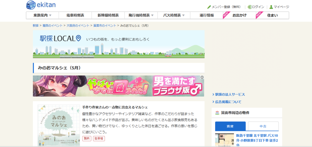 - 見どころ: こだわりのアクセサリーやインテリア雑貨、布小物などが並びます。会場には飲食ブースも充実しており、新駅「箕面萱野駅」からも徒歩すぐという好立地。新緑の箕面で、のんびりとした休日を過ごすのに最適です。