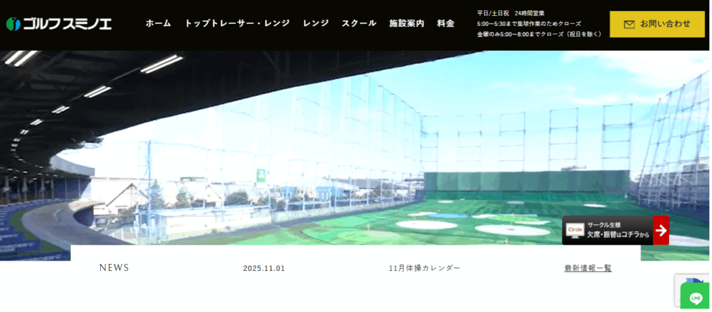 入会金0円のサークルに加入すると、サークル打席や室内打席、スイング診断、ボディコンディショニングスタジオ、フィットネスマシーンの利用、スクール受講など、多彩な特典も利用可能。24時間営業でアクセスも良く、本格的にレベルアップしたい方におすすめの施設です。