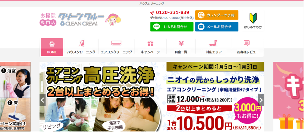 自社雇用スタッフによる地域密着のサービスが強み。年中無休で「今日すぐに来てほしい」という急な依頼にも対応可能です。出産前後のお掃除セットや水回りパックなど、ライフステージに合わせたお得なセットプランが非常に充実しています。
