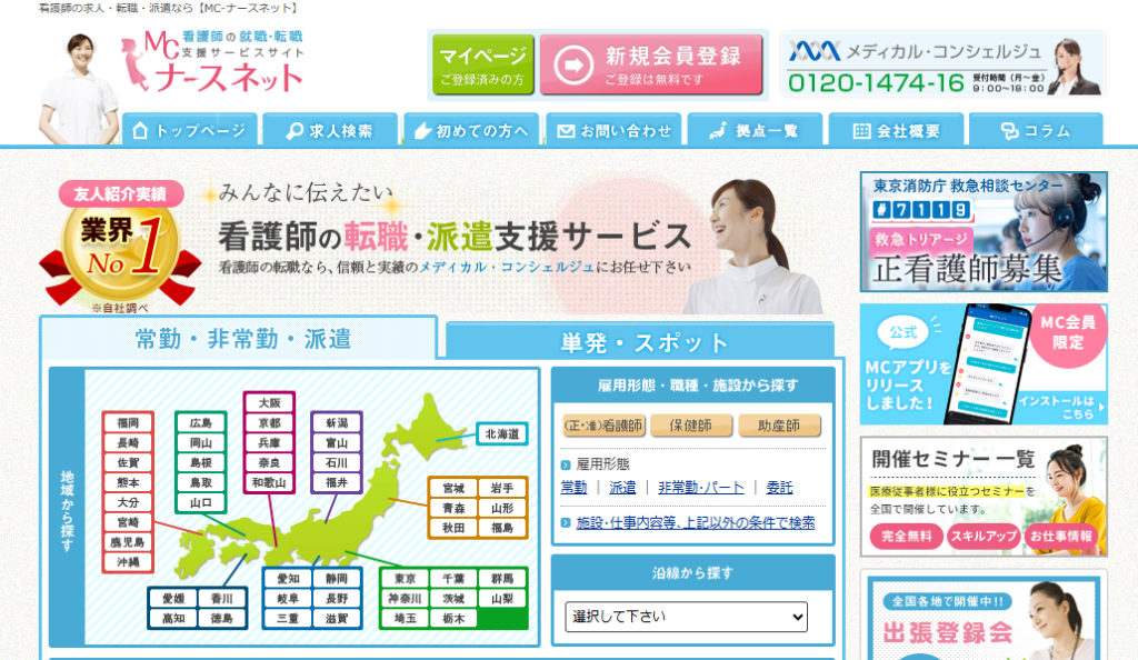 MCナースネットは、単発・派遣・パートの求人に強みを持つ看護師向け求人サービスです。