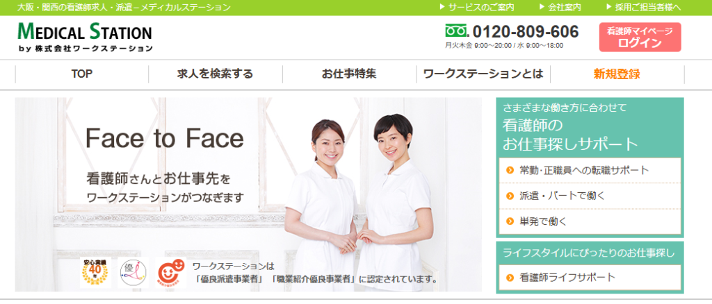 大阪エリアの医療機関からの直接求人も豊富です。スピードを重視して転職を進めたい方に向いているサービスです。