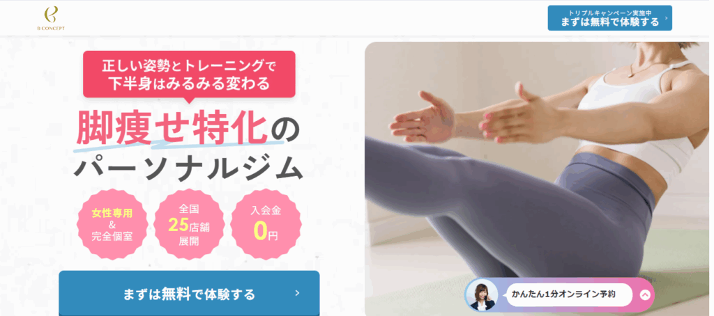 「ビーコンセプト」は、医師とトレーナーの独自メソッドによる、“脚痩せに特化” した女性専用パーソナルジム。完全個室で周りの目を気にせず集中でき、運動初心者の女性でも安心して通える環境が整っています。