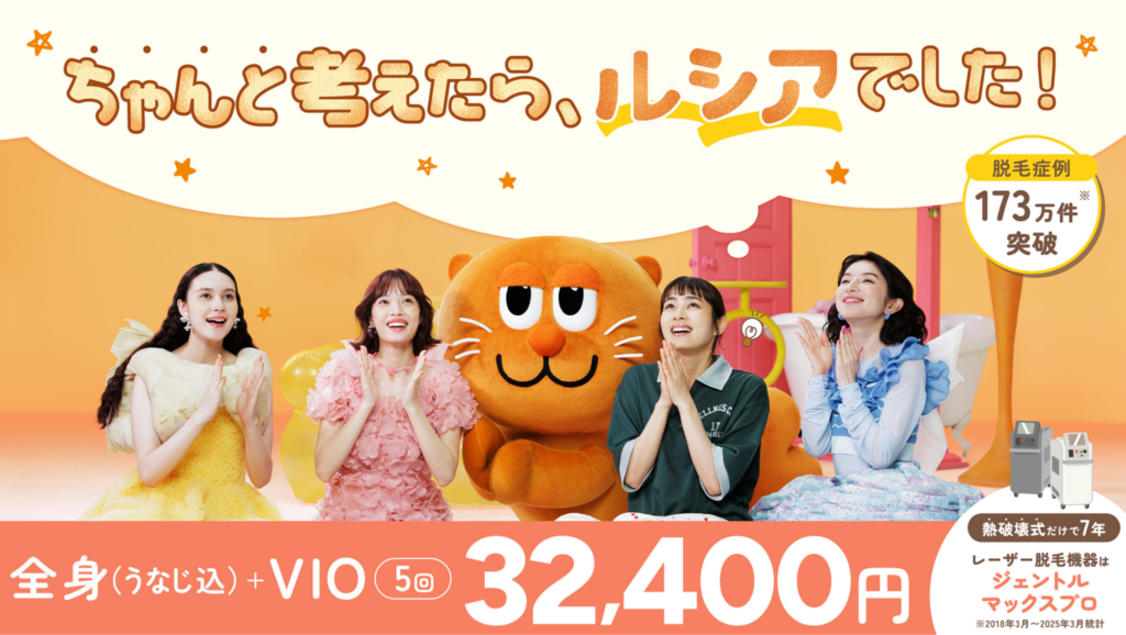 - 全身脱毛 5回:144,000円〜(時期により変動あり)