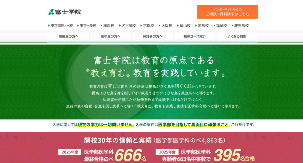| 富士学院 | チーム体制+精神面サポート | 講師・職員が一体となった「チーム」指導 |