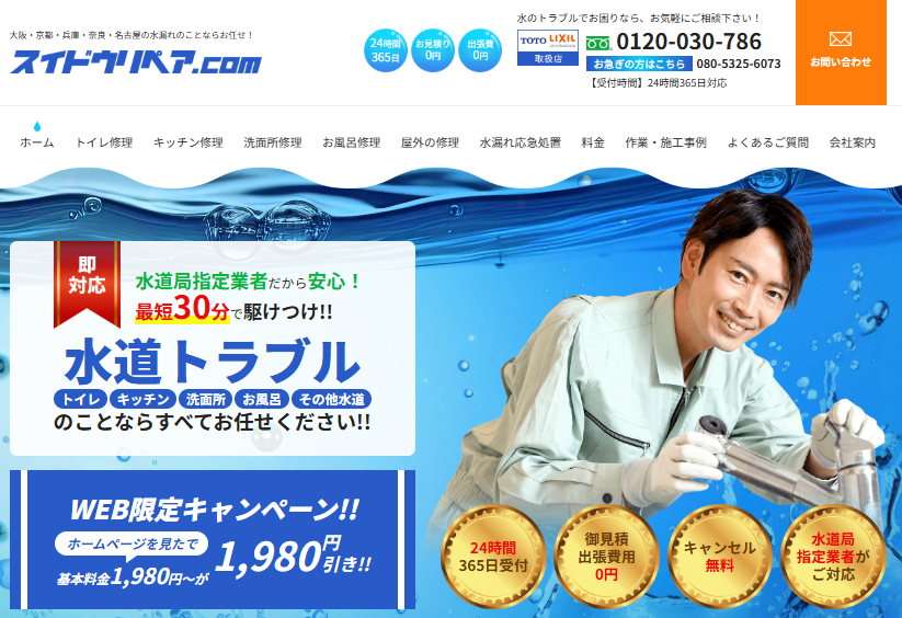 - スイドウリペア:出張・見積もり0円、明朗会計を徹底