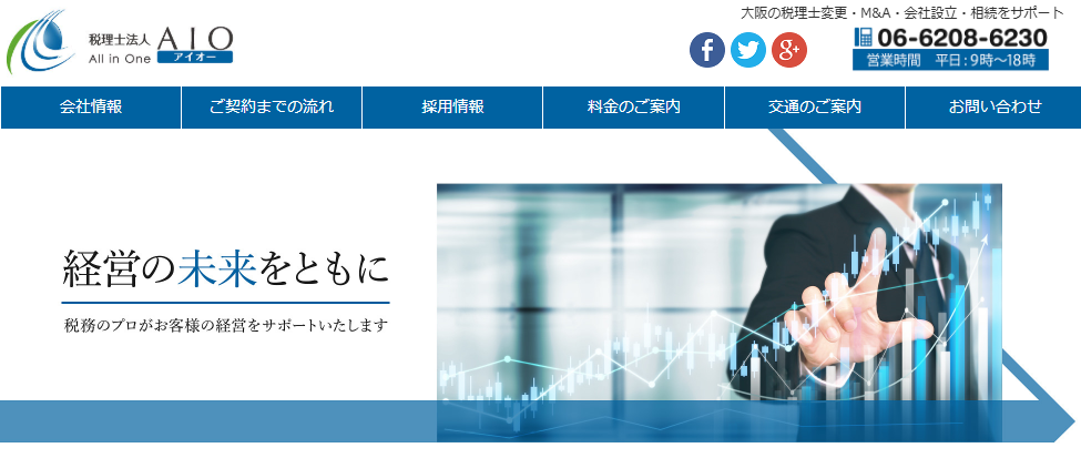 「税理士法人AIO」は、大阪市北区(南森町・天満宮)にある、中小企業の経営支援に強い事務所です。 単なる事務処理代行ではなく、「経営計画」の策定や「資金繰り」のアドバイスなど、社長の右腕としてのサポートを重視しています。