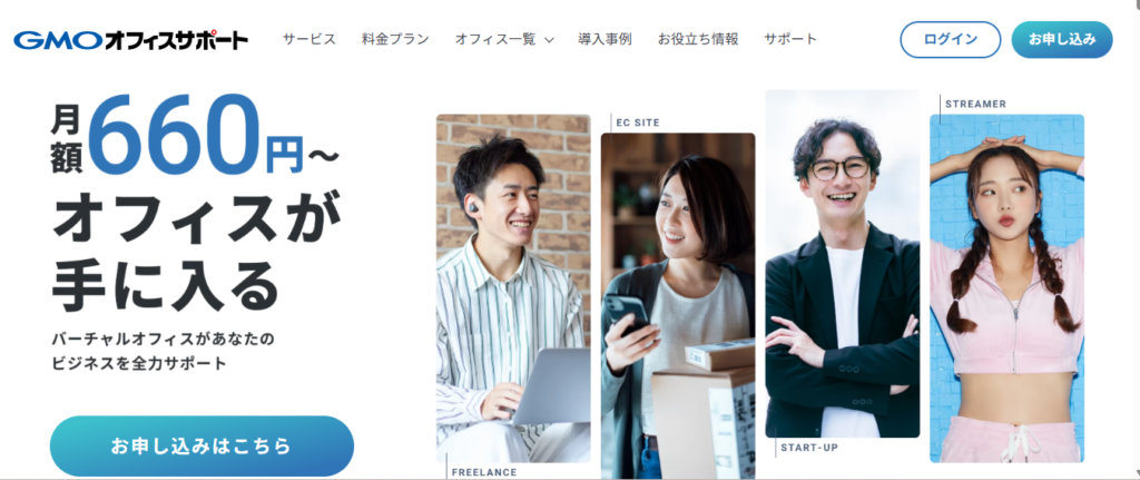 IT大手のGMOインターネットグループが提供するバーチャルオフィスです。