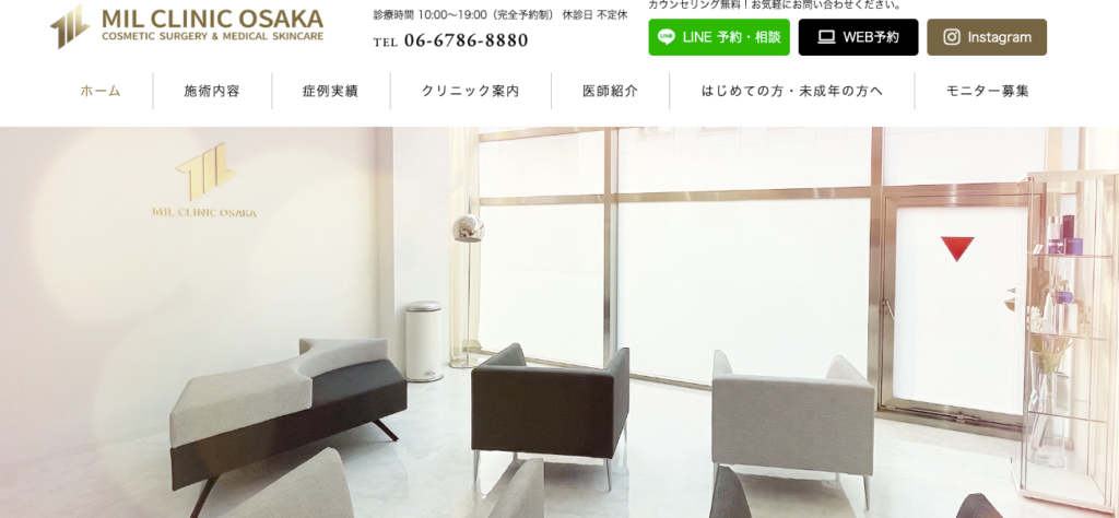 | 店舗名 | MIL CLINIC OSAKA(ミルクリニック大阪) |