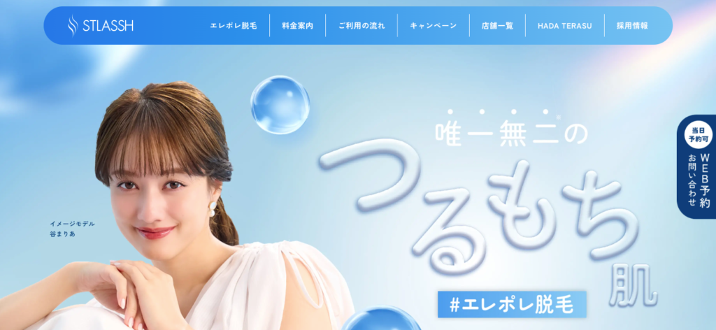 脱毛はもちろん、美肌ケアなどメニューの幅もあるので、毛だけでなく肌悩みもまとめて相談したい人に向きます。予約はWEBやLINEなど複数の導線が用意されており、空き状況に合わせて動きやすいのも嬉しいポイント。