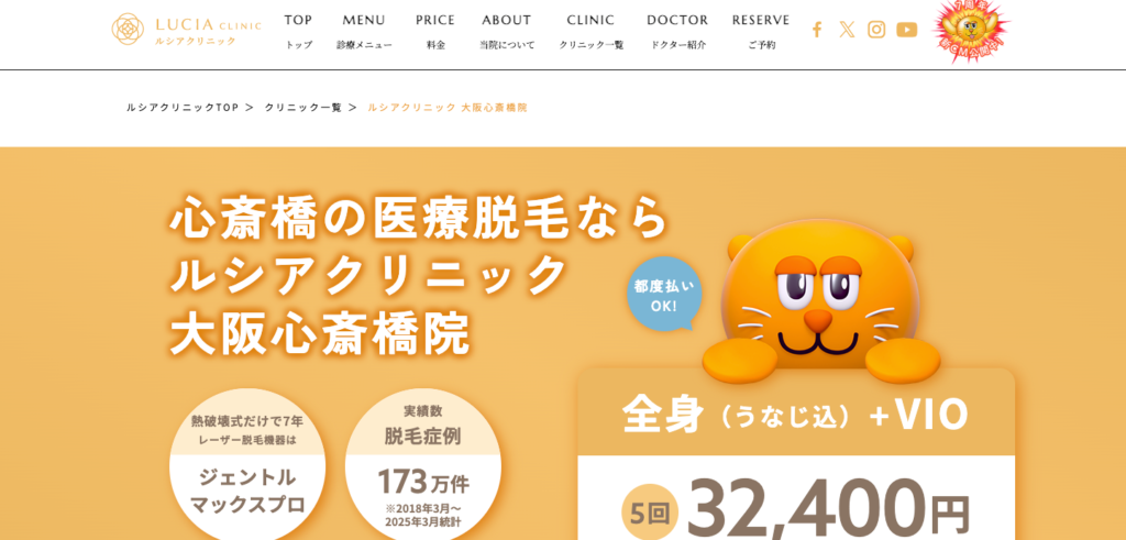 | 公式サイト | https://lucia-c.com/clinic/osaka-shinsaibashi/ |