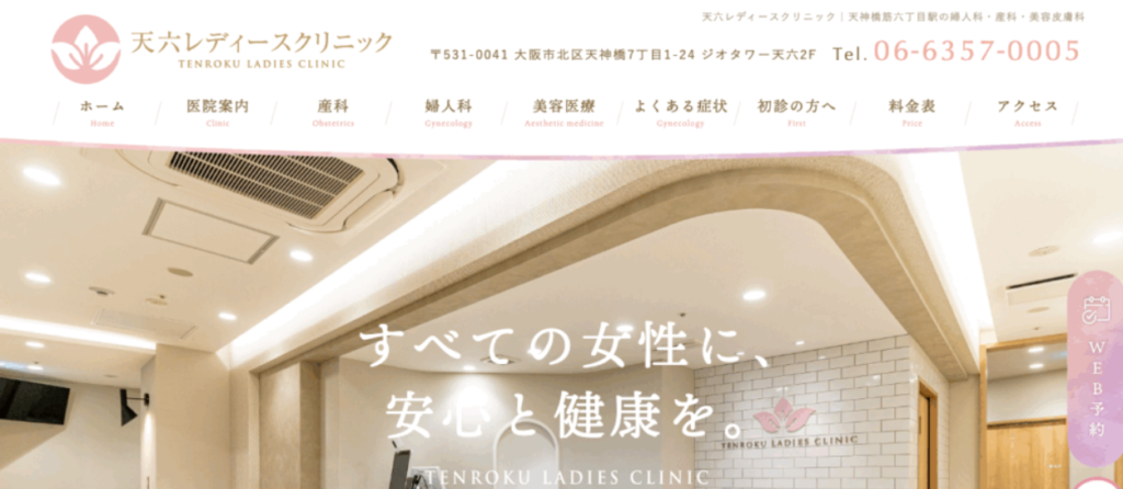 天六駅直結のビル内にあり、婦人科の視点からも女性の美をサポートしてくれる、忙しい現代女性の強い味方となるクリニックです。