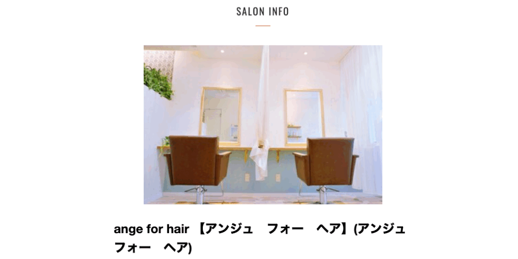 | 店舗名 | ange for hair(アンジュ フォー ヘアー) |