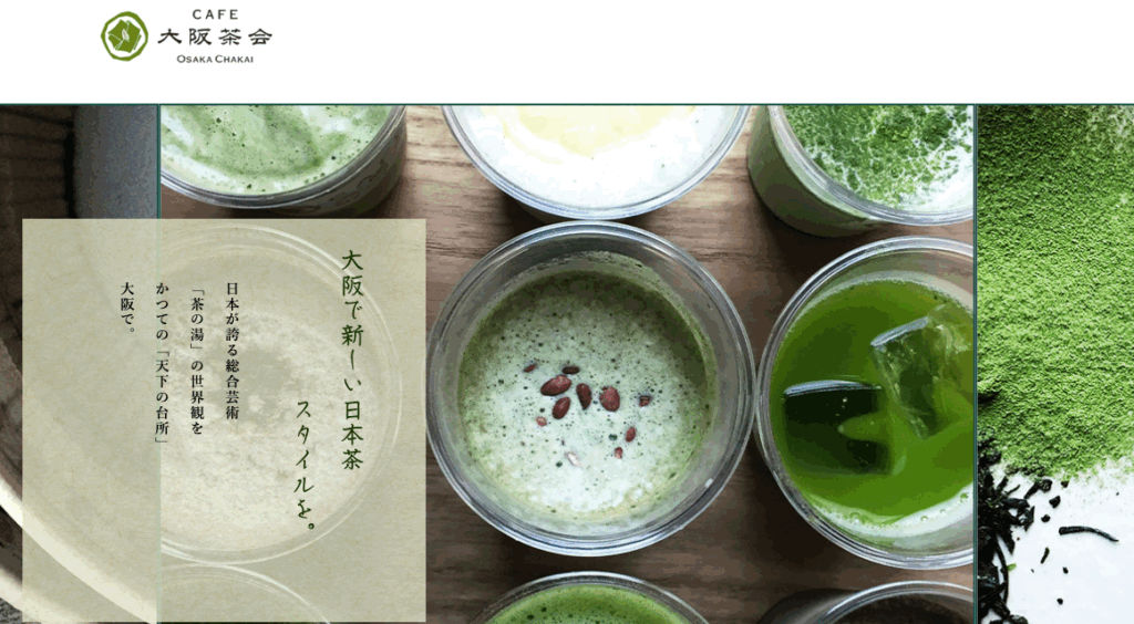 「CAFE大阪茶会」は、和の美意識を現代的に表現した“お茶カフェ”。大阪天満宮駅から徒歩約4分、落ち着いた和モダンの店内で、抹茶・ほうじ茶など日本茶をアレンジしたドリンクやスイーツが味わえます。