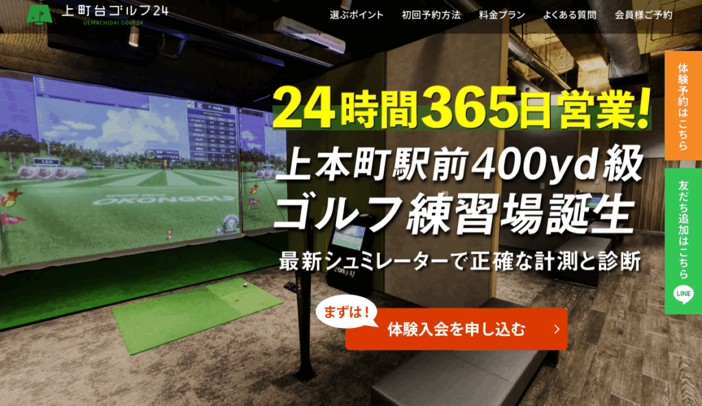 「上町台ゴルフ24」は、近鉄・大阪メトロ「上本町駅」から徒歩2分の場所にある24時間営業のインドアゴルフ練習場です。最新の弾道解析システム「トラックマン」を全打席に導入しており、プロ並みのデータ分析が可能。スイング軌道やボールスピードなどを可視化し、効率的な上達をサポートします。