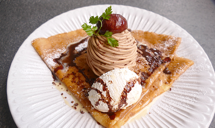 人気の「生ハムと卵のガレット」はランチにもぴったりで、スイーツクレープは季節限定のフルーツメニューが登場します。ドリンクは香り高いフランス紅茶「マリアージュフレール」やハーブティーが揃い、ティータイムをゆったり楽しめます。