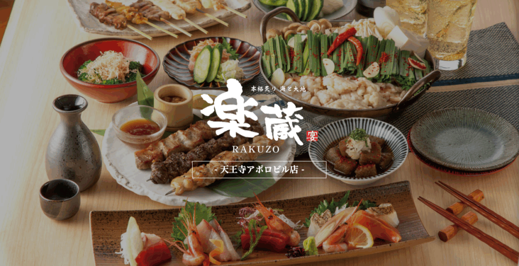 | 店舗名 | 全席個室 楽蔵うたげ 天王寺アポロビル店 |
