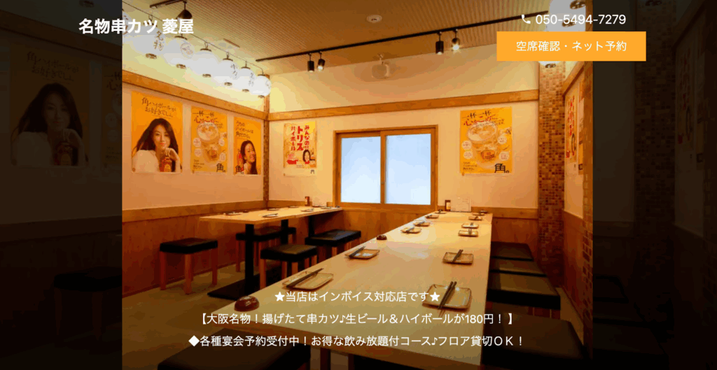 | 店舗名 | 名物串カツ 菱屋 天王寺店 |
