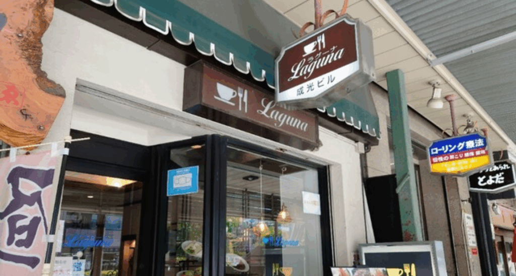 天王寺駅北口から徒歩約2分。レンガ調の外観が目印の「純喫茶ラグーナ」は、地元で長く愛される老舗喫茶店です。朝8時から営業しており、出勤前のひと時をゆったり過ごせる落ち着いた雰囲気が魅力。