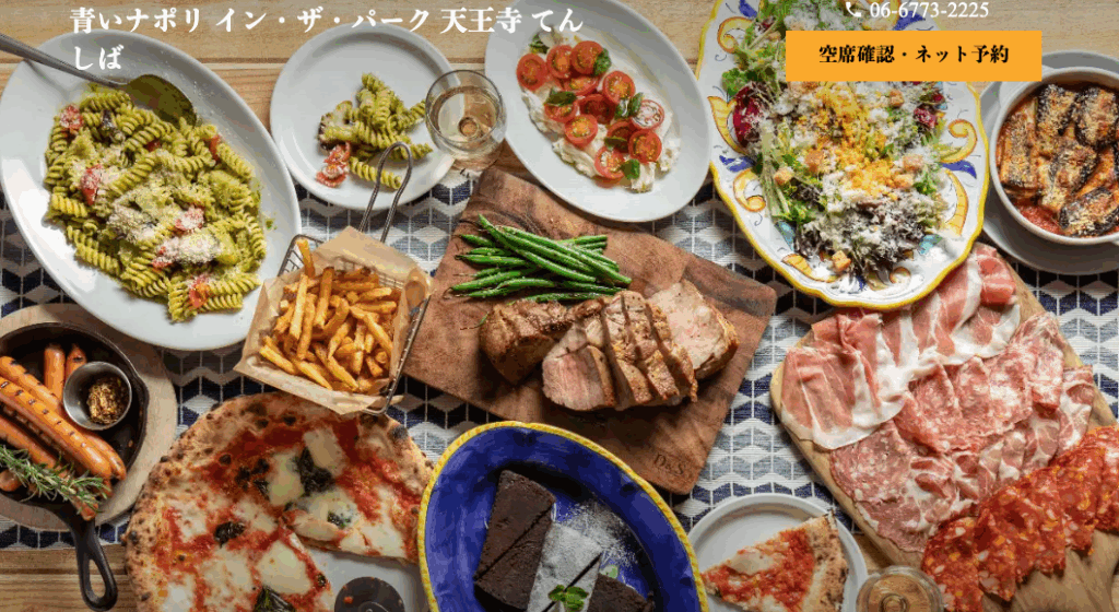 天王寺公園「てんしば」に佇む「青いナポリ イン・ザ・パーク」は、緑に囲まれた開放的なロケーションで楽しむリゾート感満点のイタリアンレストラン。テラス席からは大阪の街並みと自然の両方を眺めながら、焼きたてのナポリピッツァやパスタを堪能できます。