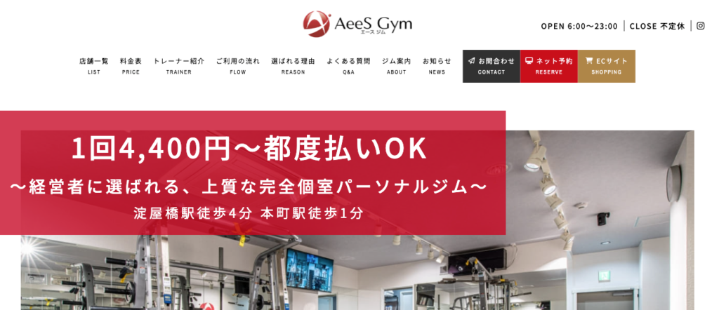 | 店舗名 | AeeS Gym 淀屋橋店 |